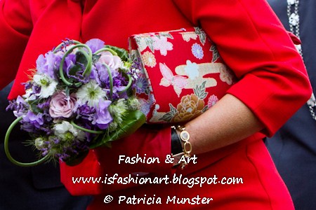 I spotted Queen Maxima in a ensemble by Belgian designer Edouard Vermeulen for Fashion House Natan and a matching hat by Fabienne Delvigne, a clutch with floral & butterfly print and nude peep toes.